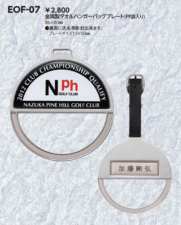 金属製タオルハンガーバックプレートオリジナルプリントエポマーク付完全データ要・納期約2週間・裏面に氏名を彫刻裏面プレートサイズ(10mm×50mm)軟質ビニールケース入り