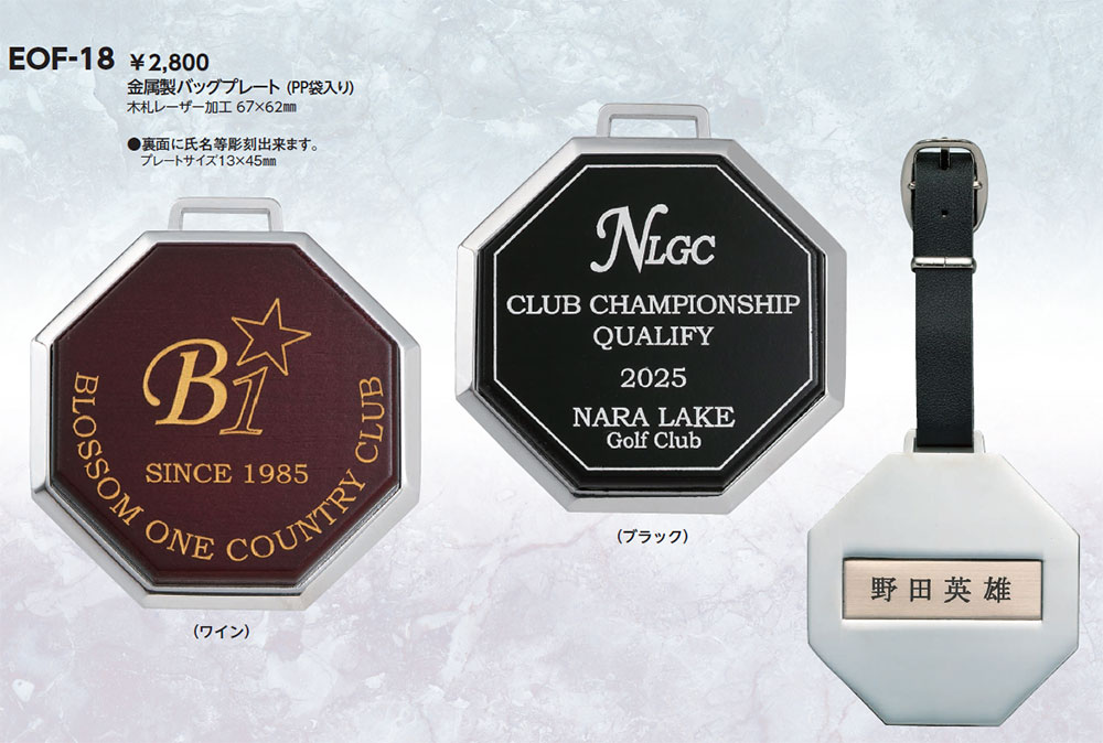 金属製バックプレート・木札レーザー加工完全データ要・納期約2週間裏面に氏名を彫刻 裏面プレートサイズ(13mm×45mm)軟質ビニールケース入り