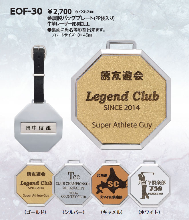 金属製バックプレート・牛革レーザー彫刻加工完全データ要・納期約2週間・裏面に氏名を彫刻 裏面プレートサイズ(13mm×45mm)軟質ビニールケース入り