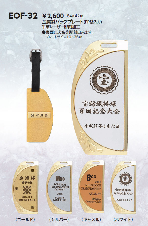 金属製バックプレート・牛革レーザー彫刻加工完全データ要・納期約2週間・裏面に氏名を彫刻 裏面プレートサイズ(10mm×35mm)軟質ビニールケース入り