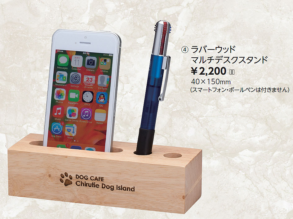 ラバーウッドマルチスタンド正面にレーザー彫刻加工・紙ケース入り名入れ範囲(140mm×30mm)・納期約10日間ご発注数量が10個以下の場合は小口料が必要となります