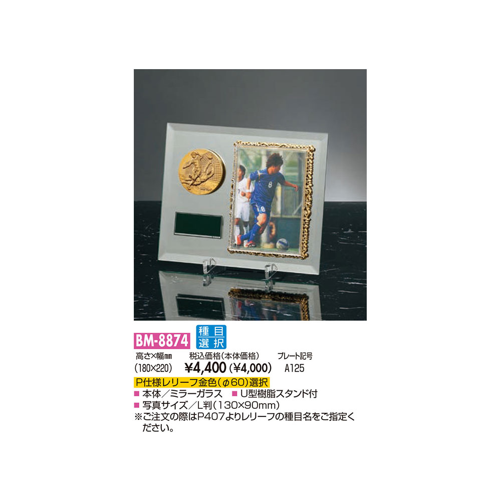 本体/ミラーガラス製・写真サイズL判(130×90mm)レリーフ/樹脂製60mm取替樹脂製U型スタンド付き