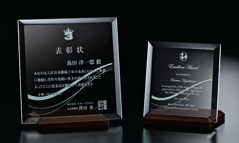 本体/ガラス製台座/木製裏面からレーザー彫刻納期約3週間