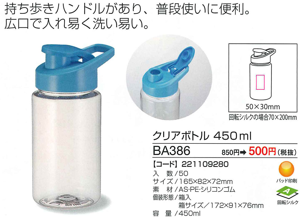 アウトドア(品番:クリアボトル450ml)