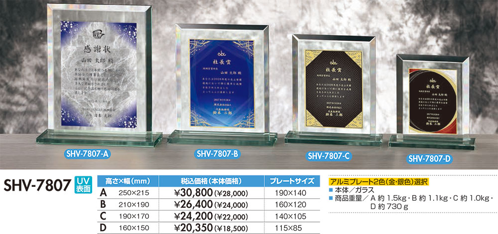 本体/ガラス製アルミプレート(金・銀)UVカラー印刷・納期約15日間