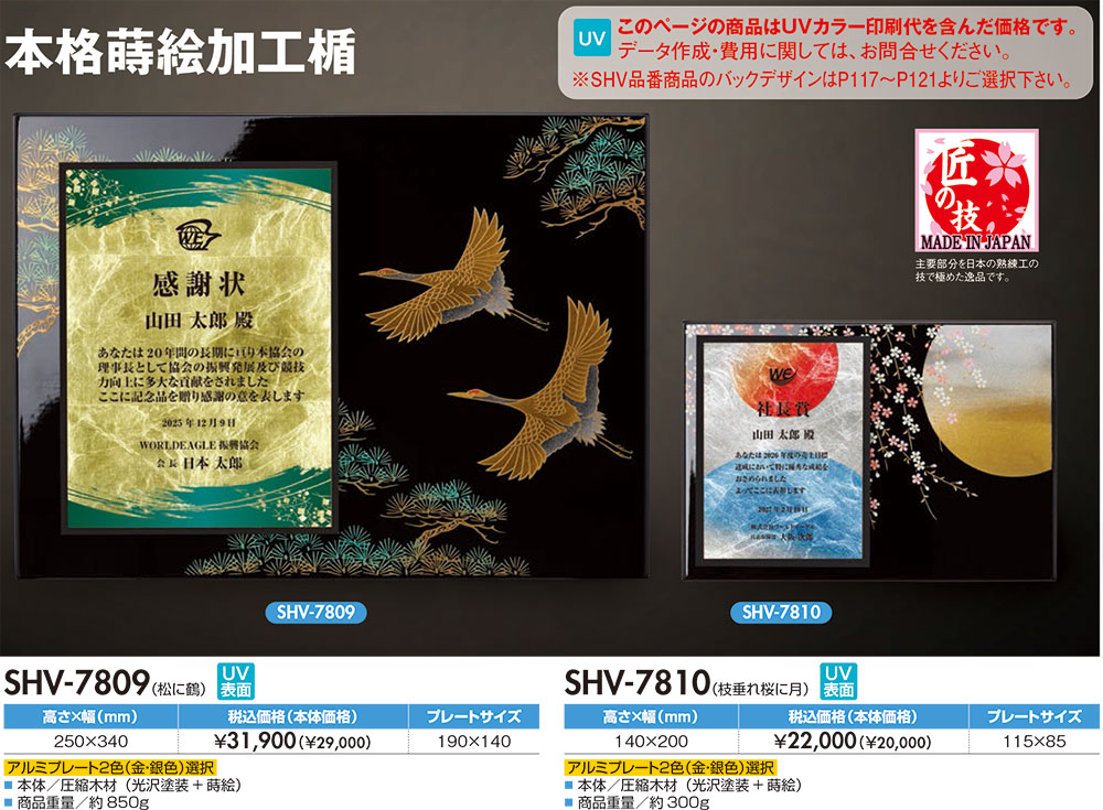 本体/圧縮木材(光沢塗装+蒔絵)アルミプレート(金・銀)UVカラー印刷・納期約15日間