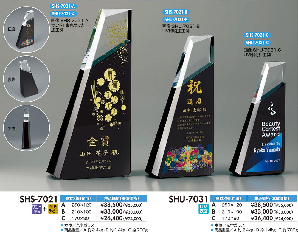 本体/光学ガラス製サンドブラスト加工金色入り(納期約15日間)UV印刷(納期約10日間)
