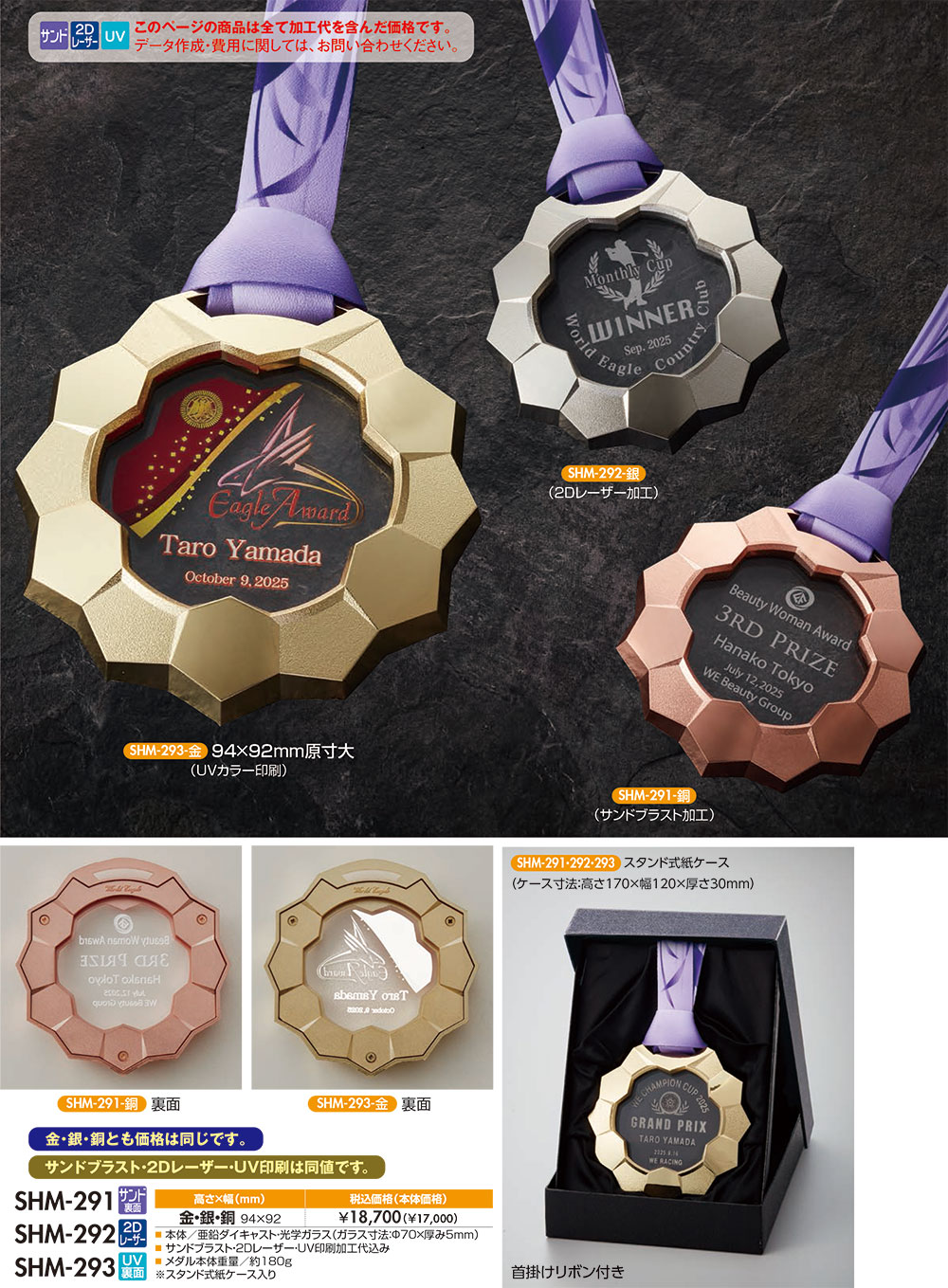 | SHM-293金 | UV印刷 縦9.4cm×横9.2cm (首掛けリボン付・化粧紙ケース入り) プレート品番: