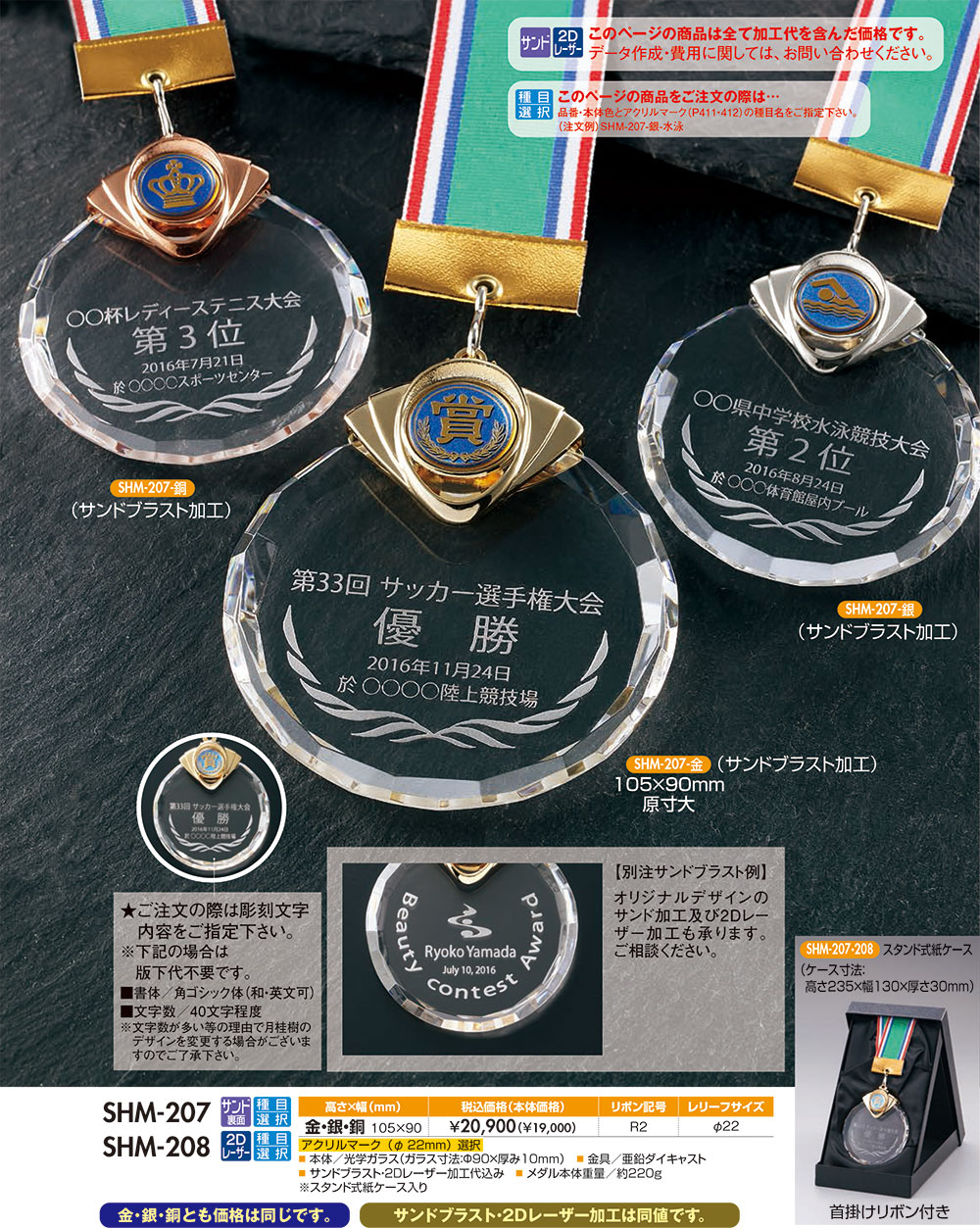 本体/光学ガラス製・金具/亜鉛ダイキャスト製レリーフ/アクリル製(直径22mm)サンドブラスト加工(納期約10日間)2Dレーザー彫刻(納期約15日間)