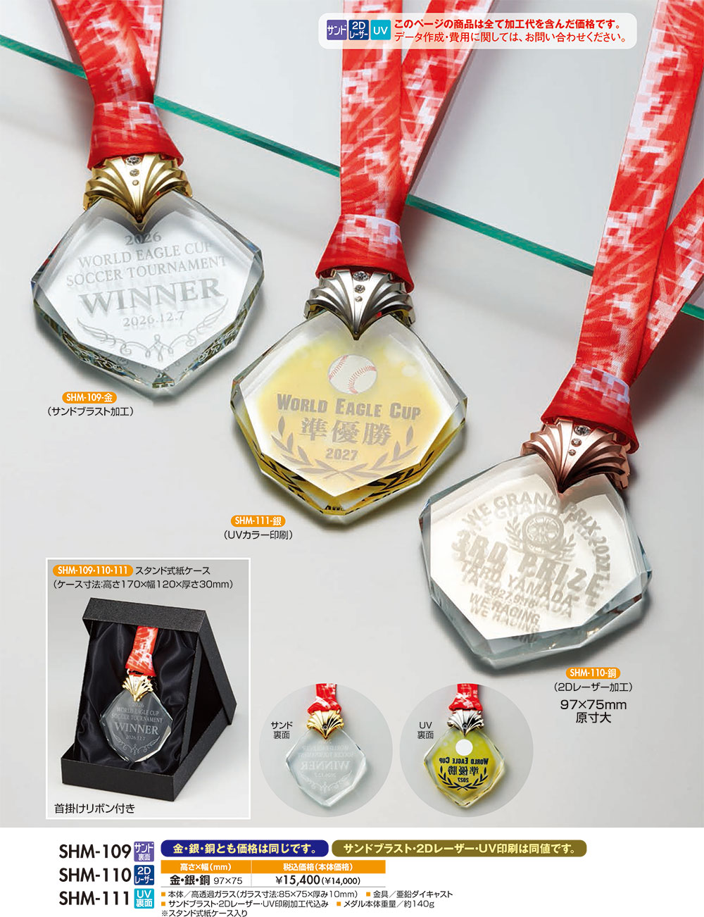 | SHM-111金 | UV印刷 縦9.7cm×横7.5cm (首掛けリボン付・化粧紙ケース入り) プレート品番:
