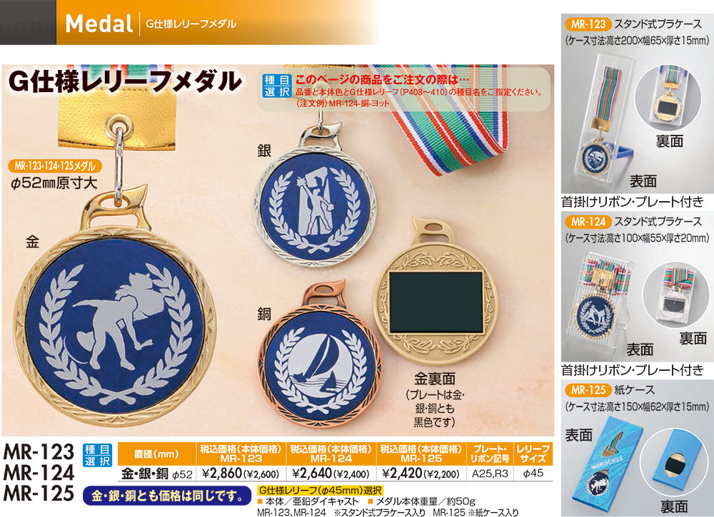 レリーフ直径45mm メダル本体 直径52mm (首掛けリボン付・プラケース入り) プレート品番:A25 |