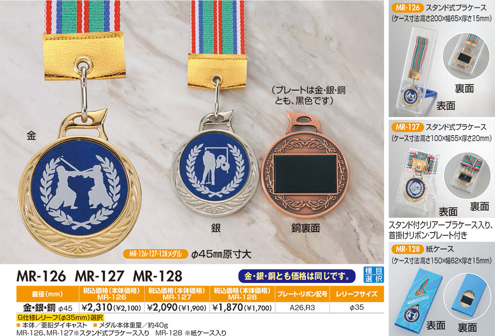 レリーフ直径35mm メダル本体 直径45mm (首掛けリボン付・プラケース入り) プレート品番:A26 |