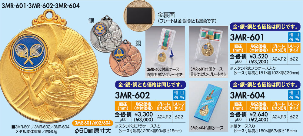 レリーフ直径22mm メダル本体 直径60mm (首掛けリボン付・プラケース入り) プレート品番:A24 |