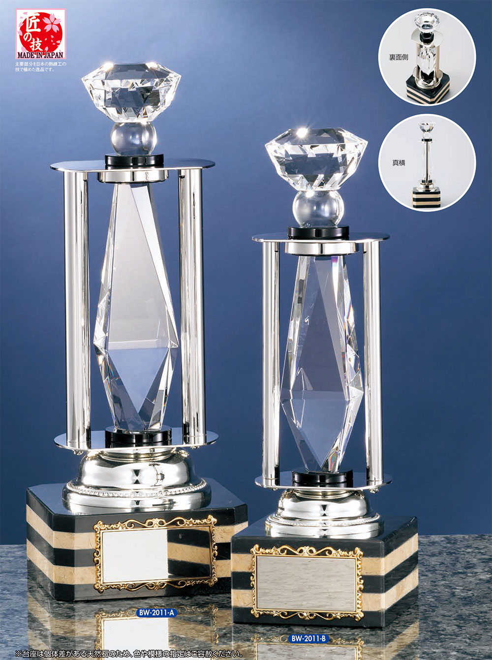 本体/光学ガラス製・真鍮製台座/ジェットブラック・ベロナ大理石製