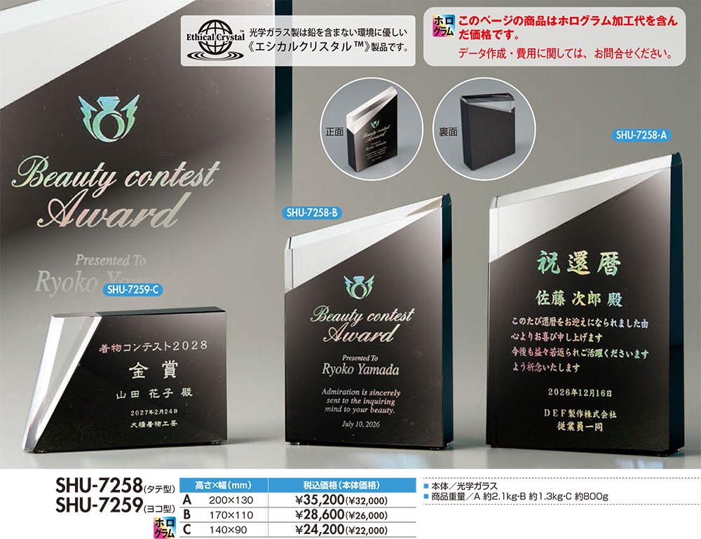 本体/光学ガラス製ホログラム加工(納期約15日間)