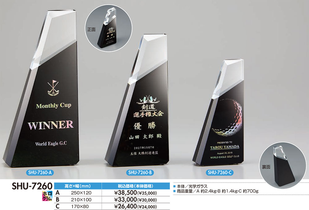 ガラス製 表彰楯 2(品番:SHU-7260)