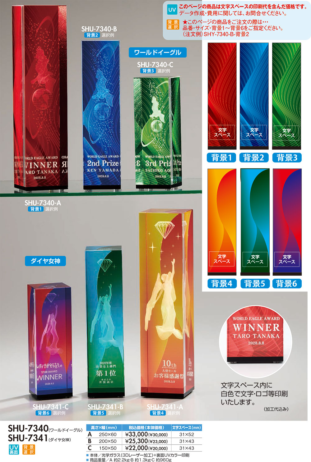 本体/光学ガラス製(3Dレーザー加工)UV印刷(納期約15日間)