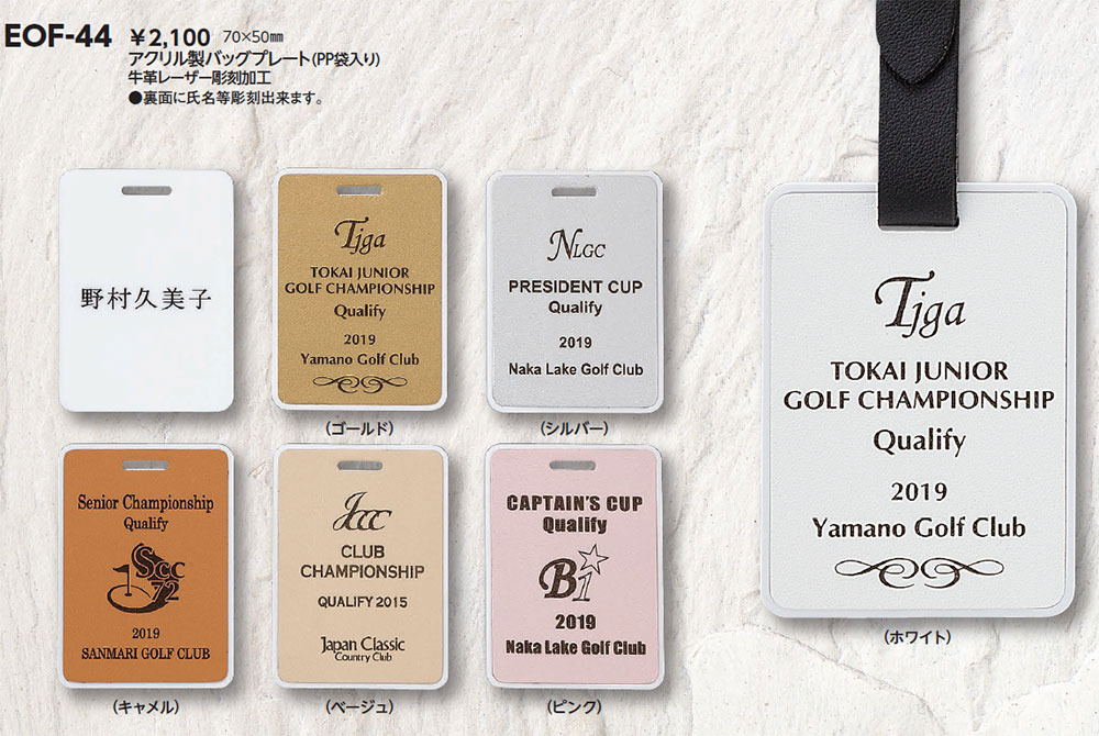 アクリル製バックプレート・牛革レーザー彫刻加工完全データ要・納期約2週間・裏面に氏名を彫刻 軟質ビニールケース入り